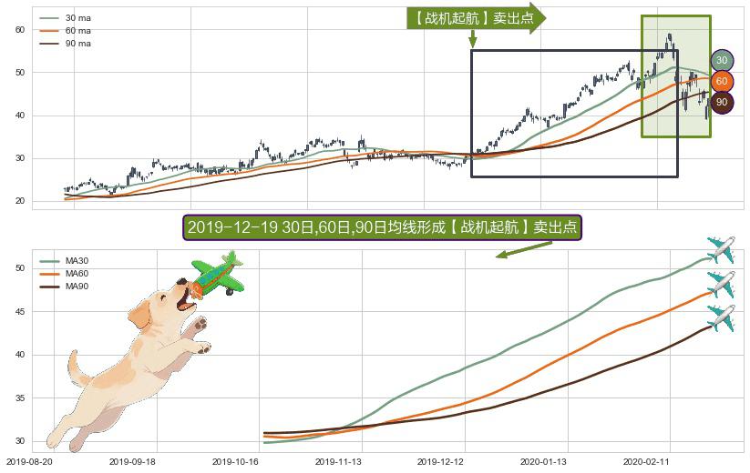 ⚀ 2019-10-17日-2020-02-24日显现 30日-60日-90日均线 【战机起航】卖出点 看空信号,后市看跌,卖出