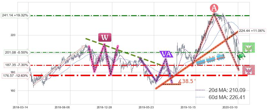 ♘ 阻力价格位201.08,可信任强度45.52%,距离最后交易2020-03-13形成的收盘价格202.10相差 -0.50%