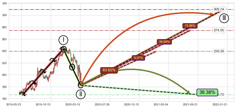 ➣ 循环浪继续向上【平均值】位置(2021-08-13, 274.50),匹配聚类样本比例60.81%, 可能性概率38.69%
