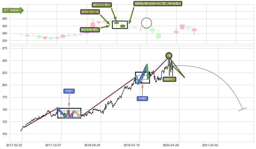 ➢ 高点影线(2020-02-25: 253.99 )→回踩→第二根k线高点(2020-02-19: 252.39 )