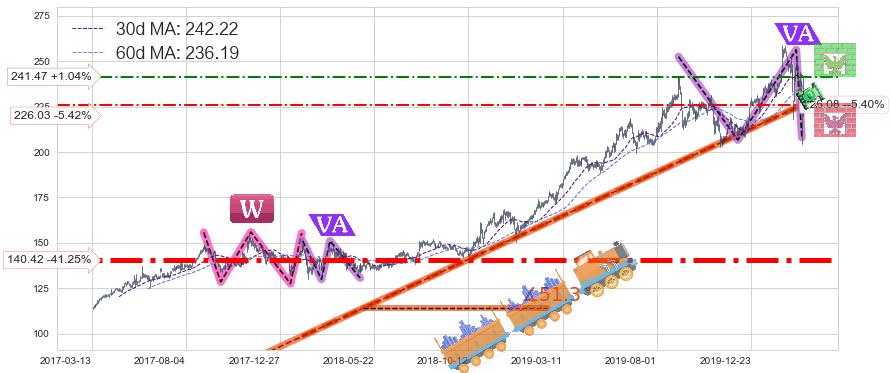 ♘ 支撑价格位226.03,可信任强度44.47%,距离最后交易2020-03-13形成的收盘价格238.99相差 -5.42%