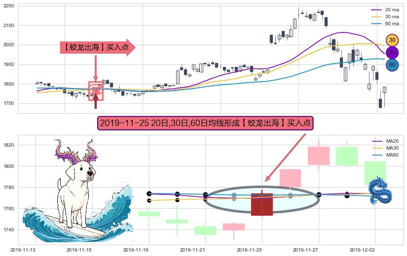 形态多维评估: ⚀ 2019-11-25日显现 20日-30日-60日均线 【蛟龙出海】买入点 看多信号,后市看涨,买入
