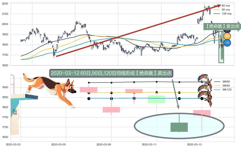 形态多维评估: ⚀ 2020-03-12日显现 60日-90日-120日均线 【绝命跳】卖出点 看空信号,后市看跌,卖出