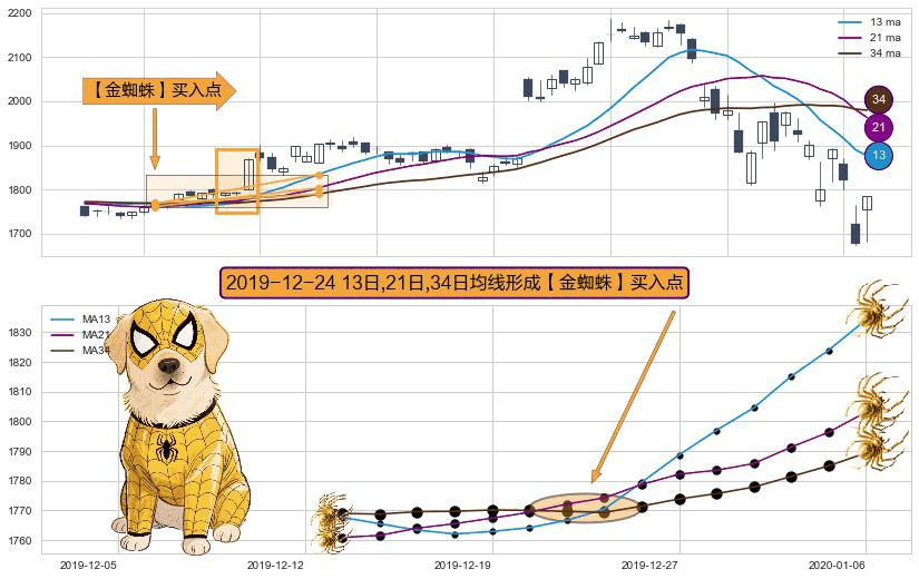 形态多维评估: ⚀ 2019-12-24日显现 13日-21日-34日均线 【金蜘蛛】买入点 看多信号,后市看涨,买入