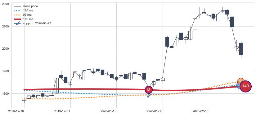上涨趋势2019-12-16-2020-02-25,均线140确认关键支撑1处