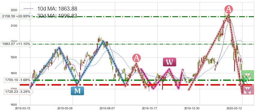 ♘ 阻力价格位1755.10,可信任强度74.66%,距离最后交易2020-03-13形成的收盘价格1785.00相差 -1.68%
