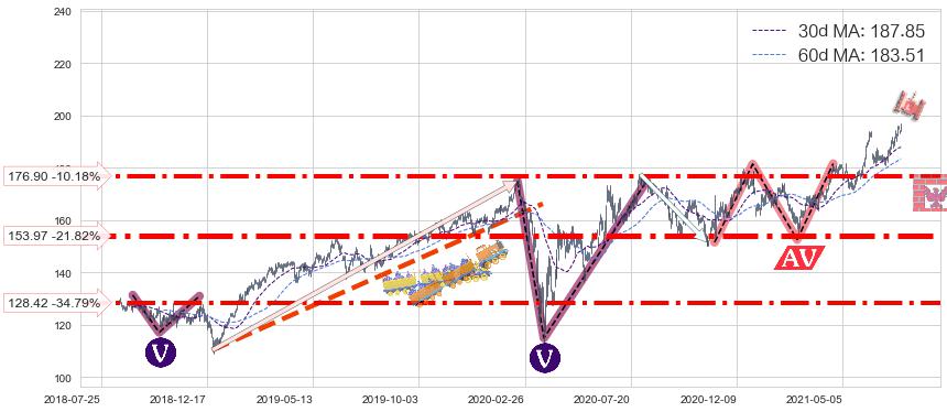 ♘ 支撑价格位153.97,可信任强度88.21%,距离最后交易2021-07-23形成的收盘价格196.94相差 -21.82%