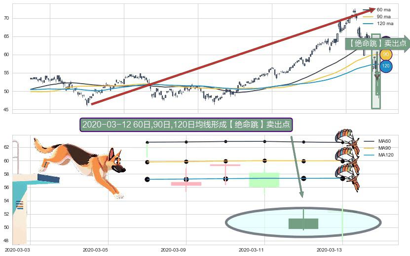 ⚀ 2020-03-12日显现 60日-90日-120日均线 【绝命跳】卖出点 看空信号,后市看跌,卖出