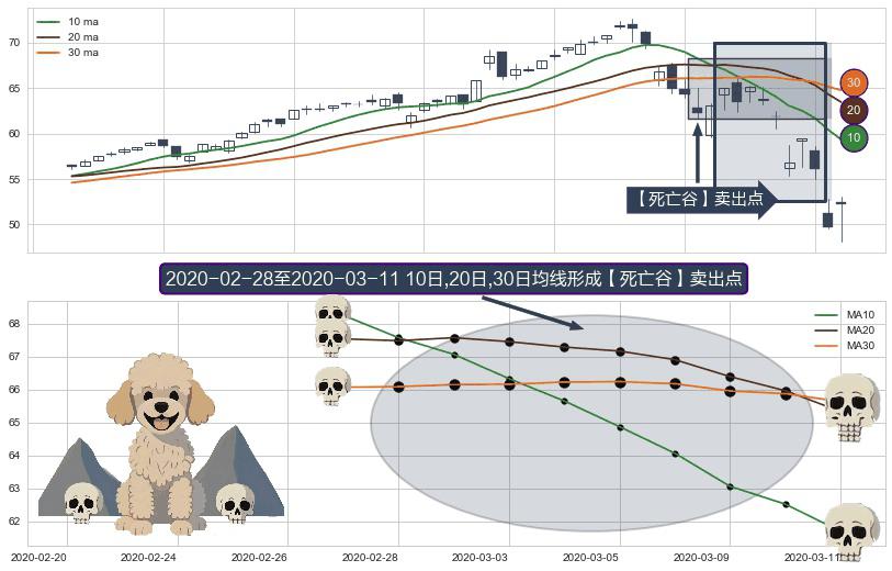 ⚀ 2020-03-02-日至2020-03-11-日显现 10日-20日-30日均线 【死亡谷】卖出点 看空信号,后市看跌,卖出