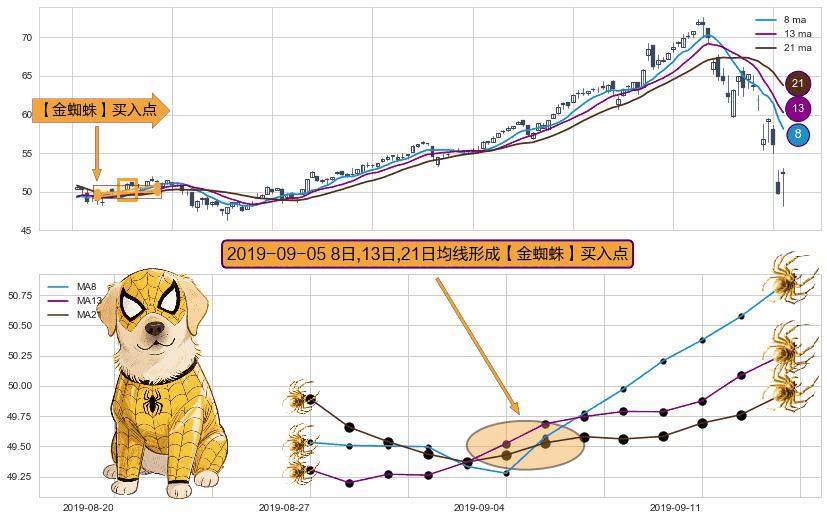 ⚀ 2019-09-05日显现 8日-13日-21日均线 【金蜘蛛】买入点 看多信号,后市看涨,买入