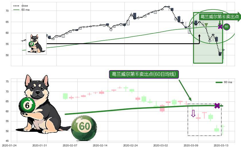 ⚀ 2020-03-06-日显现 葛兰威尔均线 60日均线 第⑥卖出点 走势反转见顶信号,后市看跌,卖出信号