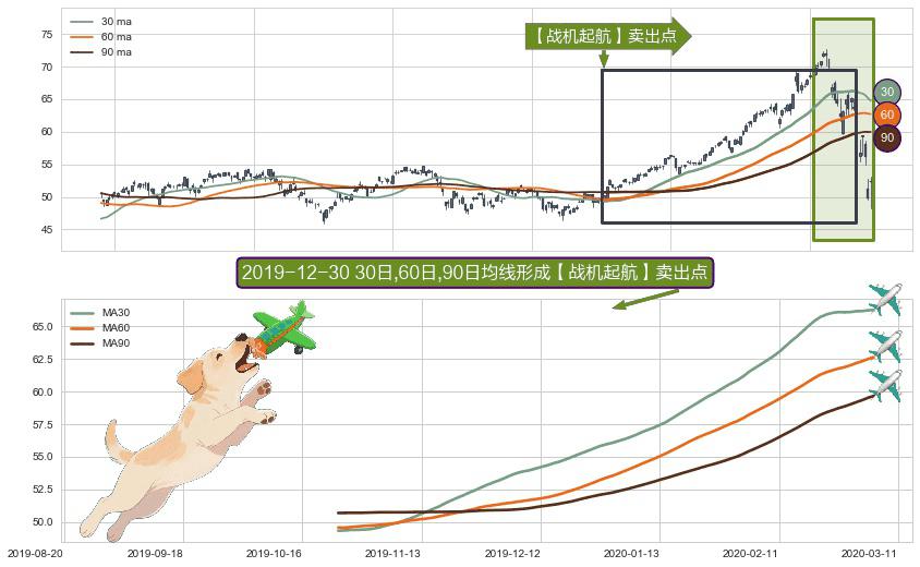 ⚀ 2019-10-24日-2020-03-05日显现 30日-60日-90日均线 【战机起航】卖出点 看空信号,后市看跌,卖出