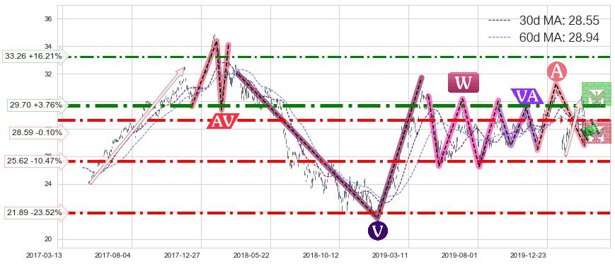 ♘ 支撑价格位28.59,可信任强度81.43%,距离最后交易2020-03-13形成的收盘价格28.62相差 -0.10%