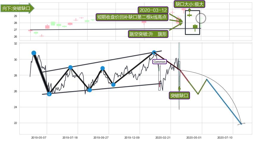 ➢ 【仅预测突破】最后价格:28.62与预测突破价格:26.94→【空间临近】后续最小【整理】第一目标价格→(2020-07-30: 21.81 )