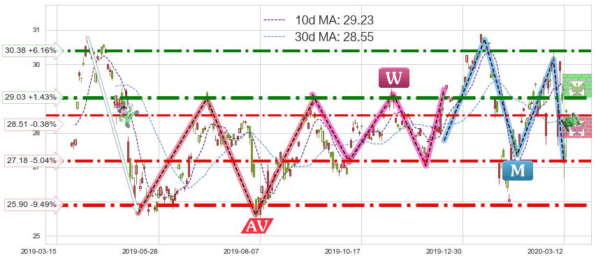 ♘ 支撑价格位28.51,可信任强度59.34%,距离最后交易2020-03-13形成的收盘价格28.62相差 -0.38%