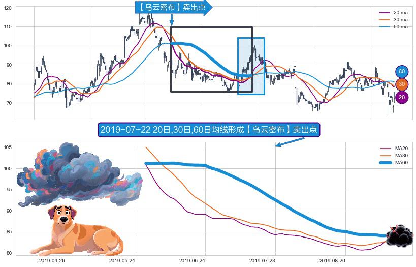 ⚀ 2019-05-30日-2019-09-10日显现 20日-30日-60日均线 【乌云密布】卖出点 看空信号,后市看跌,卖出