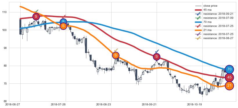 ➢ 最优均线组合共正确确认支撑阻力信号9处,正确确认率 56.25%