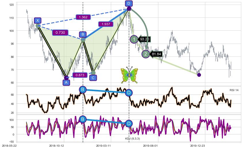 ➣ 已完成【蝴蝶】形态起点X: 2018-07-25, 终点D: 2019-05-03, 共195交易日