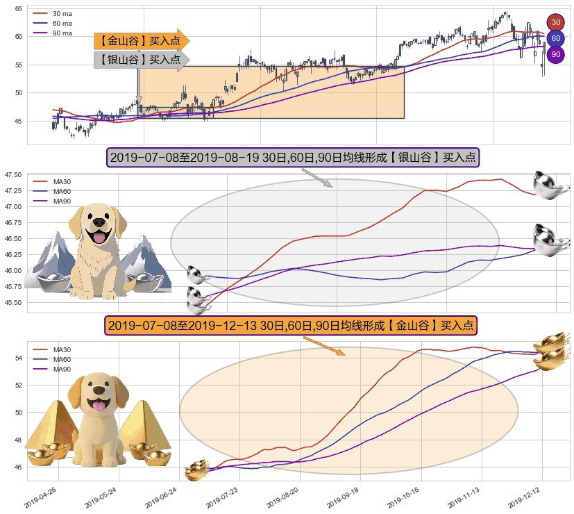 ⚃ 2019-07-09-日至2019-12-13-日显现 30日-60日-90日均线 【金山谷】买入点 其再次确认了买入信号,可靠性更强,买入