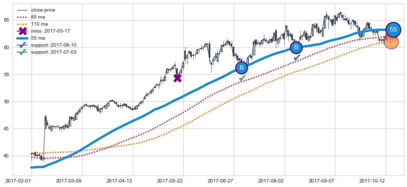 上涨趋势2017-02-01-2017-10-12,均线55确认关键支撑2处