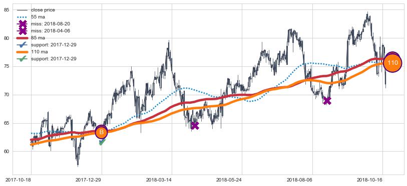 上涨趋势2017-10-18-2018-10-18,均线85, 110确认关键支撑1处