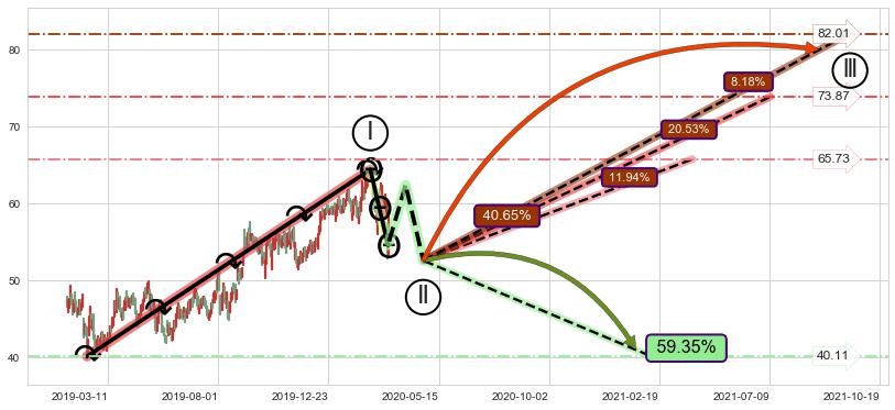 ➣ 高概率大级别循环上涨浪被破坏,反转向下(突破5浪起点)概率59.35%