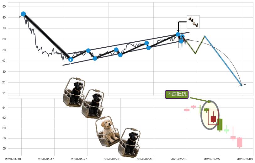 | 5 🅚:升势受阻 ➕ 📐:升旗形下行突破支撑位破位, 猜想持续下沉下跌,被突破的支撑位已变为阻力位 ☞ 看空信号 ⇥ 【🅚线】交织【图形】⇥ 综合量化分数: 35 | > |
