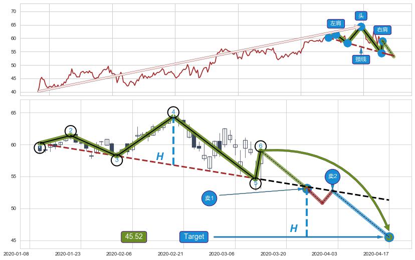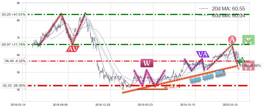 ➢ 【仅预测突破】最后价格:59.04与预测突破价格:53.11→【空间较大】后续最小【反转】第一目标价格→(2020-04-17: 45.52 )