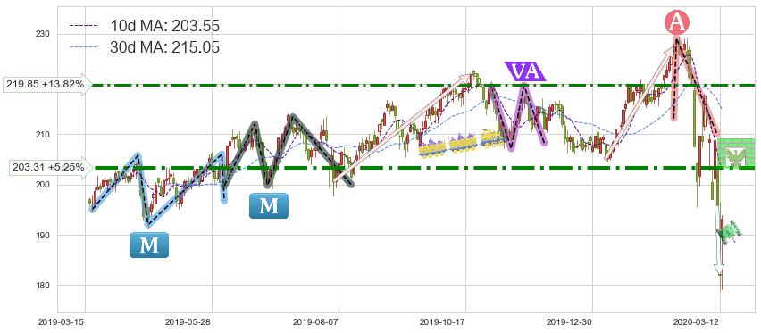 ♘ 阻力价格位203.31,可信任强度78.59%,距离最后交易2020-03-13形成的收盘价格193.16相差 +5.25%
