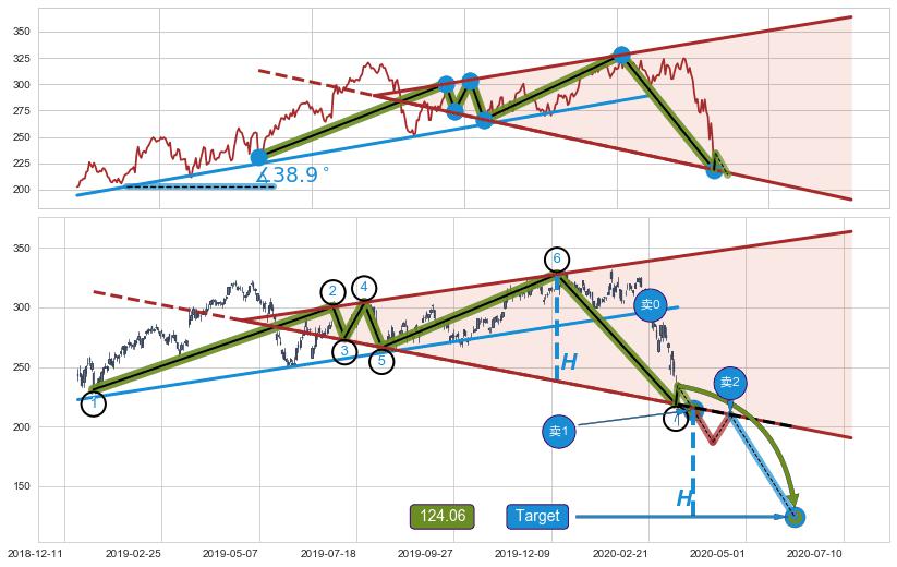 ➣ 【仅预测突破】最后价格:234.22与预测突破价格:213.83→【空间较大】后续最小【反转】第一目标价格→(2020-06-05: 124.06 )