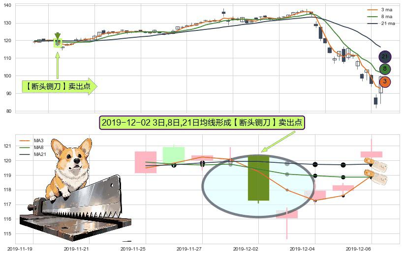 形态多维评估: ⚀ 2019-12-02日显现 3日-8日-21日均线 【断头铡刀】卖出点 看空信号,后市看跌,卖出
