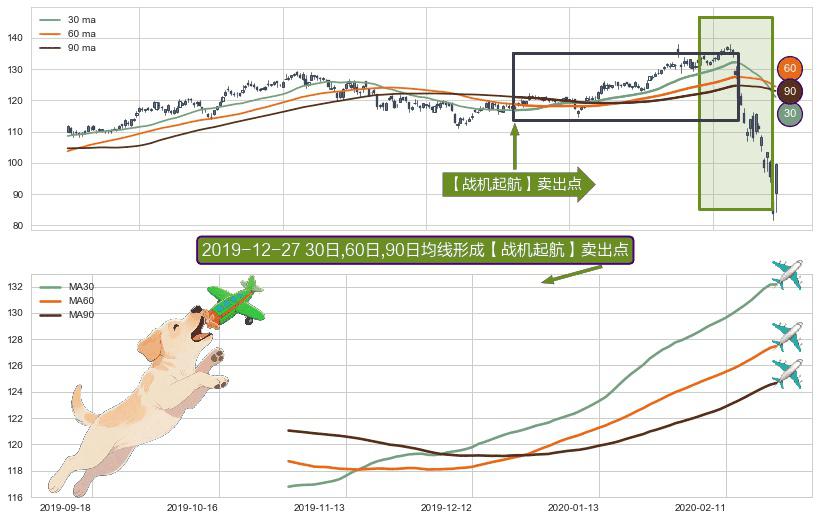 形态多维评估: ⚀ 2019-10-31日-2020-02-24日显现 30日-60日-90日均线 【战机起航】卖出点 看空信号,后市看跌,卖出