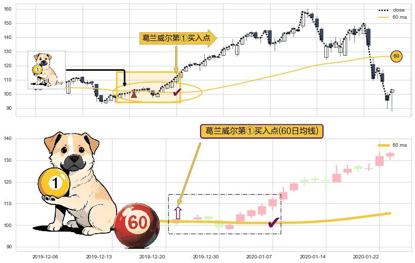 ⚀ 2019-12-23-日显现 葛兰威尔均线 60日均线 第买①入点 走势反转见底信号,后市看涨,买进信号