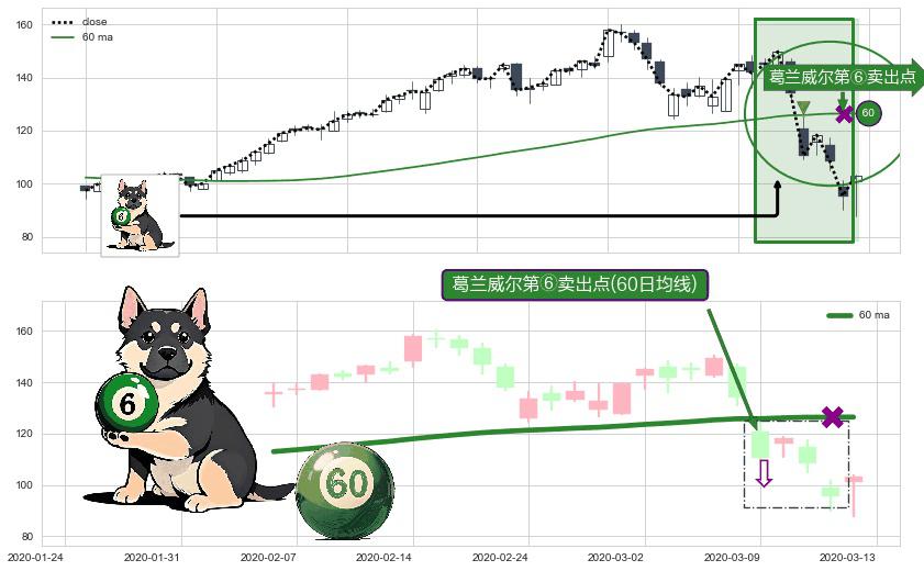 ⚀ 2020-03-09-日显现 葛兰威尔均线 60日均线 第⑥卖出点 走势反转见顶信号,后市看跌,卖出信号