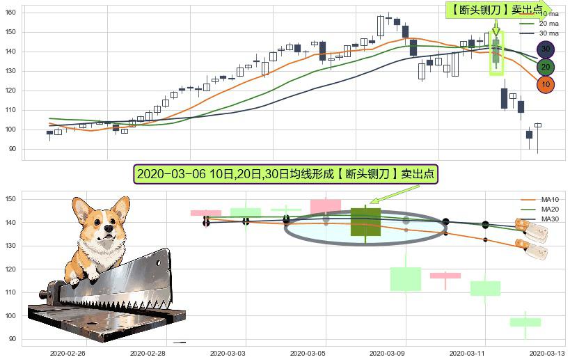 ⚀ 2020-03-06日显现 10日-20日-30日均线 【断头铡刀】卖出点 看空信号,后市看跌,卖出