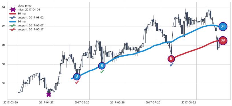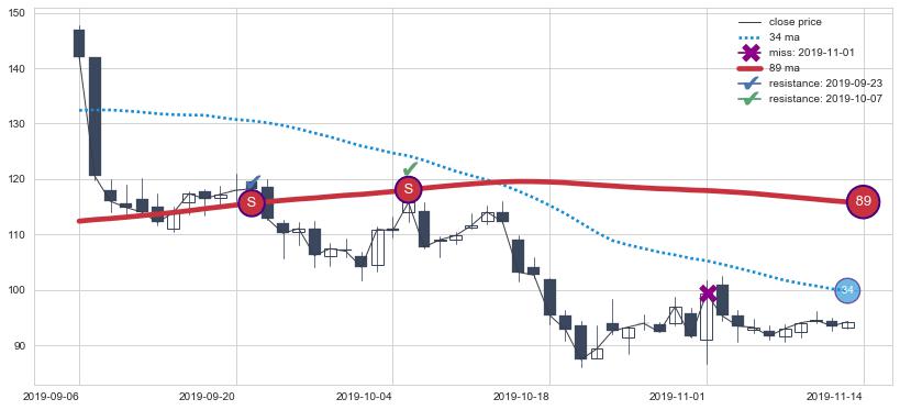 ⚃ 在破位点附近ma走势已有下垂迹象,稍后的走势中ma下降趋势明显,信号【可信度高】