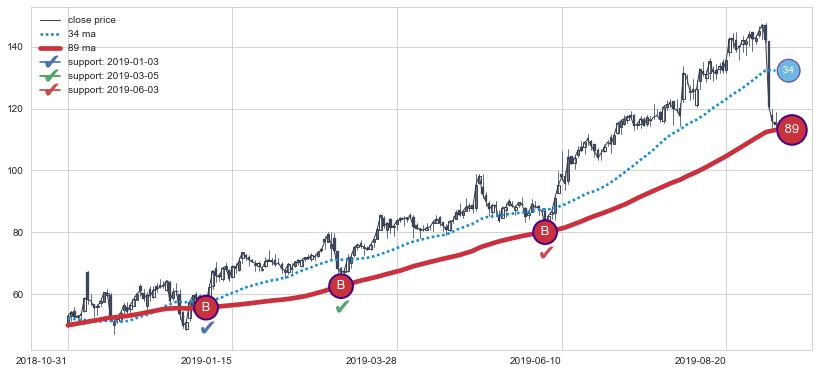⚀ 中期均线MA21上穿长期均线MA34形成的交叉是标准 黄金交叉