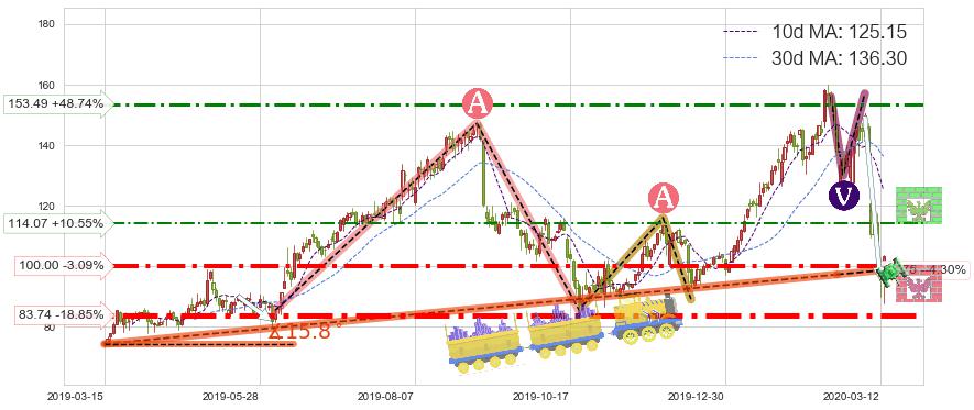 ♘ 阻力价格位153.49,可信任强度58.83%,距离最后交易2020-03-13形成的收盘价格103.19相差 +48.74%