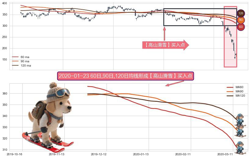 ⚀ 2019-11-29日-2020-03-13日显现 60日-90日-120日均线 【高山滑雪】买入点 看多信号,后市看涨,买入