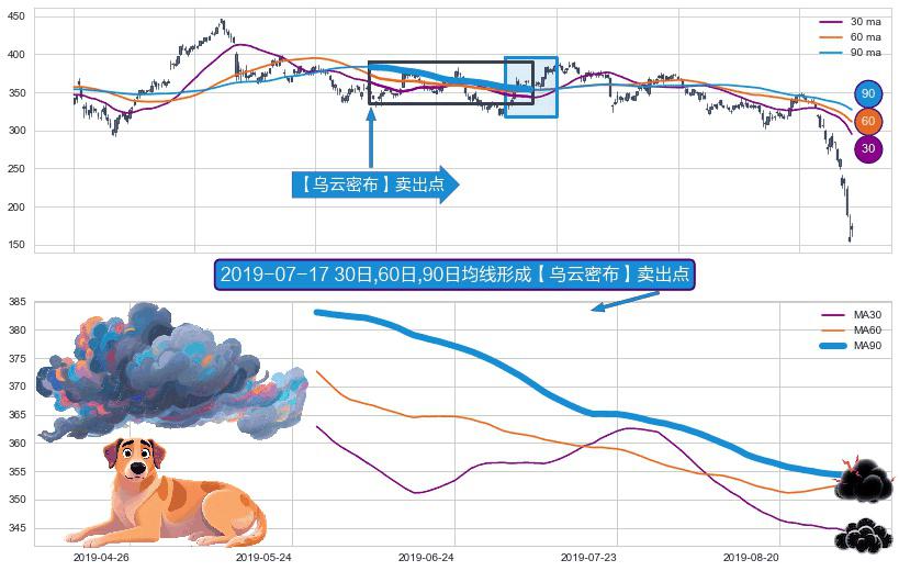 ⚀ 2019-05-30日-2019-09-03日显现 30日-60日-90日均线 【乌云密布】卖出点 看空信号,后市看跌,卖出