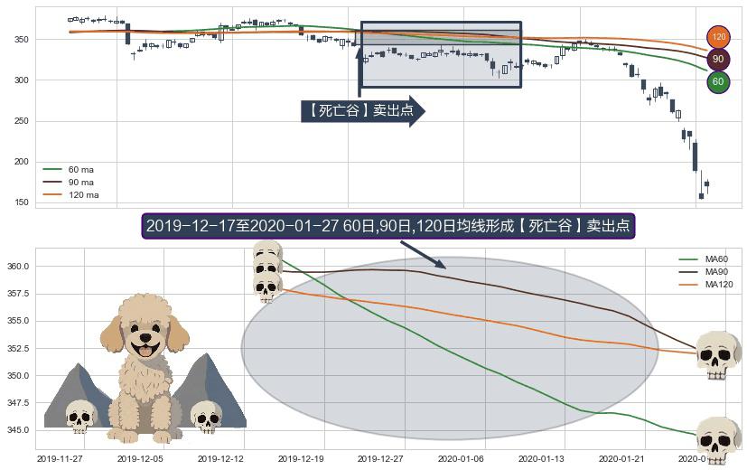 ⚀ 2019-12-18-日至2020-01-27-日显现 60日-90日-120日均线 【死亡谷】卖出点 看空信号,后市看跌,卖出
