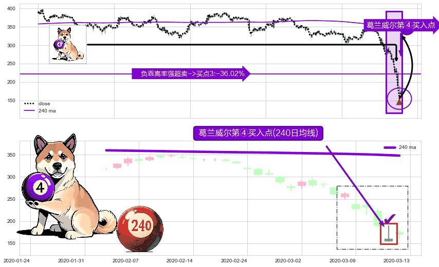 ⚀ 2020-03-12-日显现 葛兰威尔均线 240日均线 第④买入点 下降趋势均值回复的短线反弹信号,后市看涨,买进信号