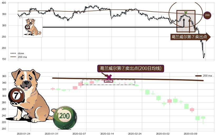 ⚀ 2020-02-13-日显现 葛兰威尔均线 200日均线 第⑦卖出点 下降趋势的中继信号,后市看跌,卖出信号