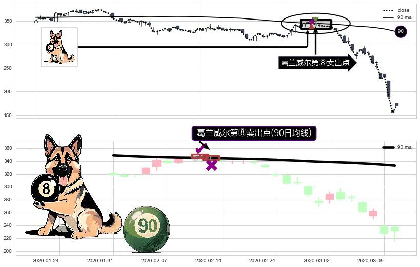 ⚀ 2020-02-13-日显现 葛兰威尔均线 90日均线 第⑧卖出点 下降趋势的中继信号,后市看跌,卖出信号