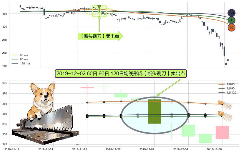 ⚀ 2019-12-02日显现 60日-90日-120日均线 【断头铡刀】卖出点 看空信号,后市看跌,卖出