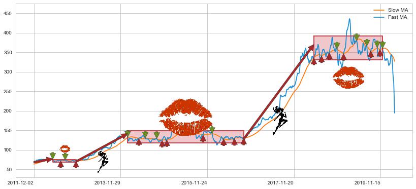 2014-01-30至2016-09-26 慢线与快线多次接触,存在上下穿越,有缠绕
