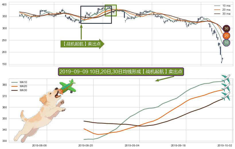 ⚀ 2019-08-16日-2019-09-30日显现 10日-20日-30日均线 【战机起航】卖出点 看空信号,后市看跌,卖出