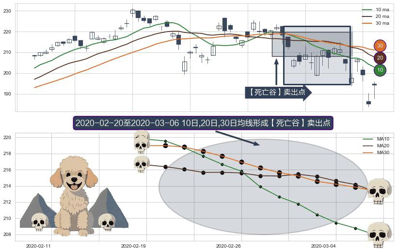 ⚀ 2020-02-21-日至2020-03-06-日显现 10日-20日-30日均线 【死亡谷】卖出点 看空信号,后市看跌,卖出