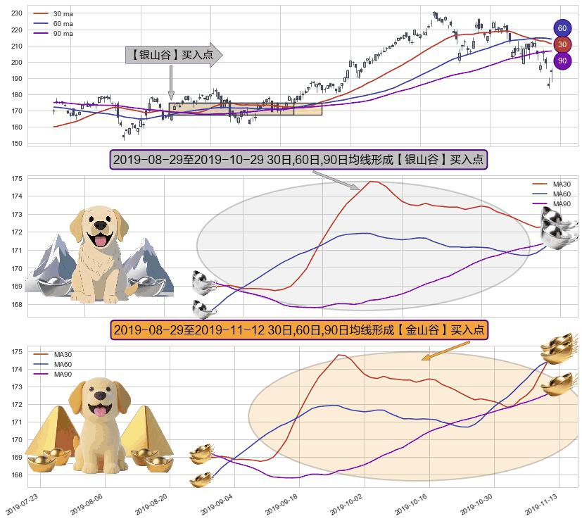 ⚀ 2019-08-30-日至2019-11-12-日显现 30日-60日-90日均线 【金山谷】买入点 其再次确认了买入信号,可靠性更强,买入