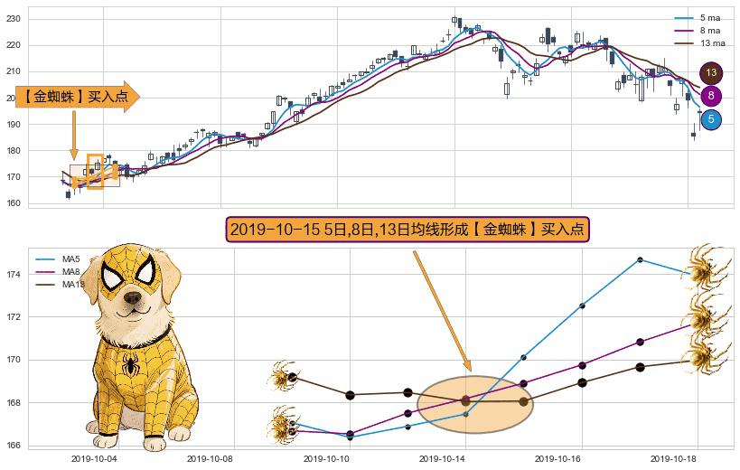 ⚀ 2019-10-15日显现 5日-8日-13日均线 【金蜘蛛】买入点 看多信号,后市看涨,买入